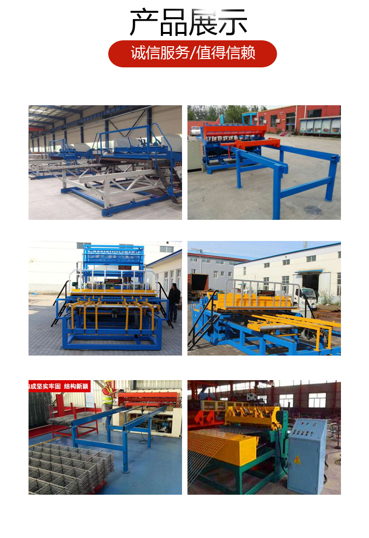 智能钢筋焊网机设备特别应用于工业与民用建筑的楼板,墙体,桥梁,混凝土路面,地台,机场,水泥管,混凝土预制件,挡土墙,山体公路坡面,隧道,码头,堤坝等领域。智能钢筋焊网机钢筋网是在用专门的焊网机将相同或不同直径的纵向和横向钢筋,用电阻点焊(低电压、高电流、焊接接触时间很短)焊接成形的网状钢筋制品。纵向钢筋和横向钢筋分别以一定间距排列且互成直角,全部交叉点均由电阻点焊在一起的钢筋网片。