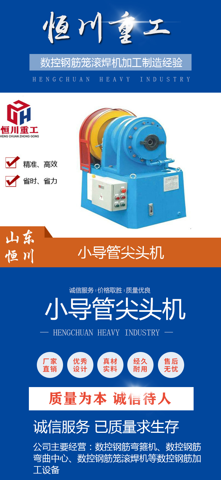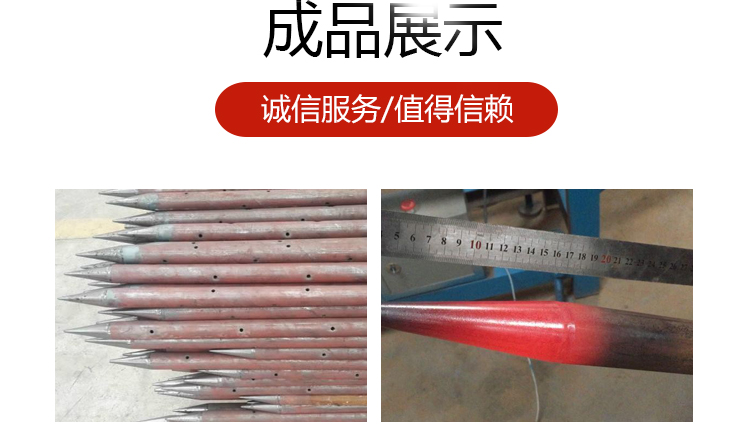 主要特点:用于加工超前小导管锥形尖头的自动化加工,有噪音小、易操 作、产量高、性能稳定等特点。 工件成形时间短,效率高,加工表面光滑,工件无伤痕。设有闭路循环润滑系统,确保机器长时间正常运行, 机器模具更换简单没在相应模具配合下可加工不同形状金属管,满足不同需求。