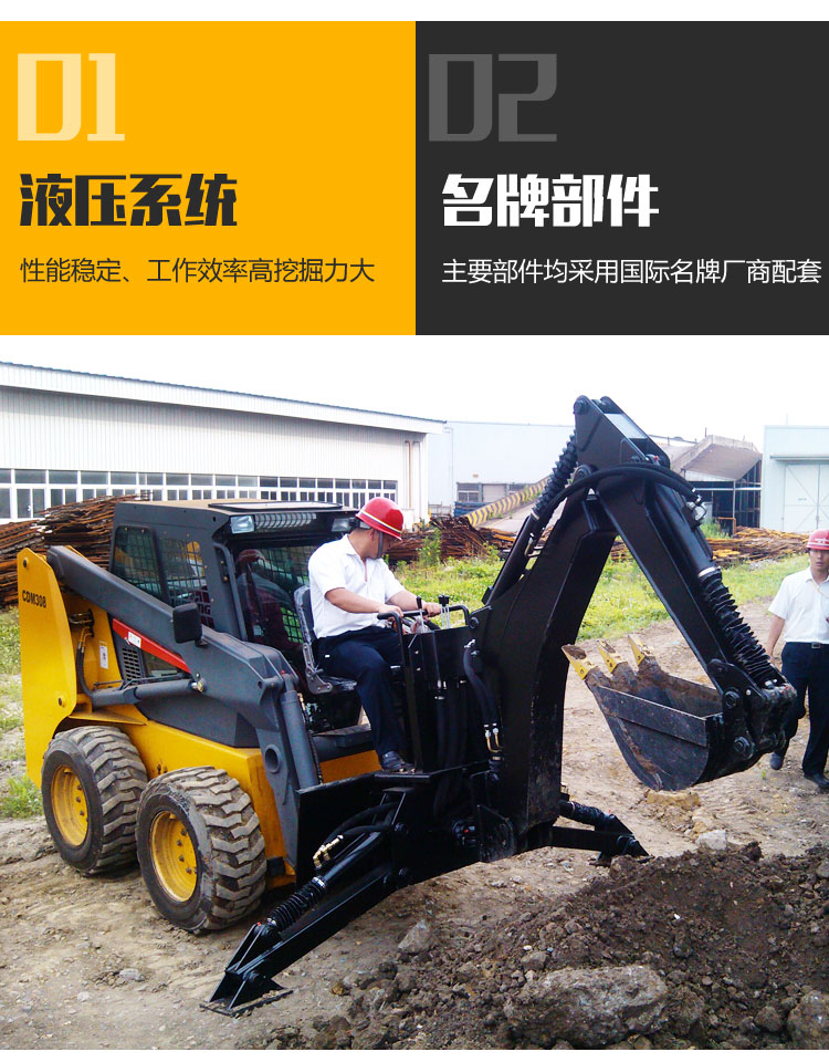 公司在提供全系列滑移机主机同时,自主研发生产相关配套附具。包括挖掘机、钻孔机、开沟机、清扫机、搅拌机、切割机、割草机、液压破碎锤、推土板、组合铲、抓木抓草叉、叉运铲等几十种作业附具。并可根据用户需求研发专项用途的作业机具。