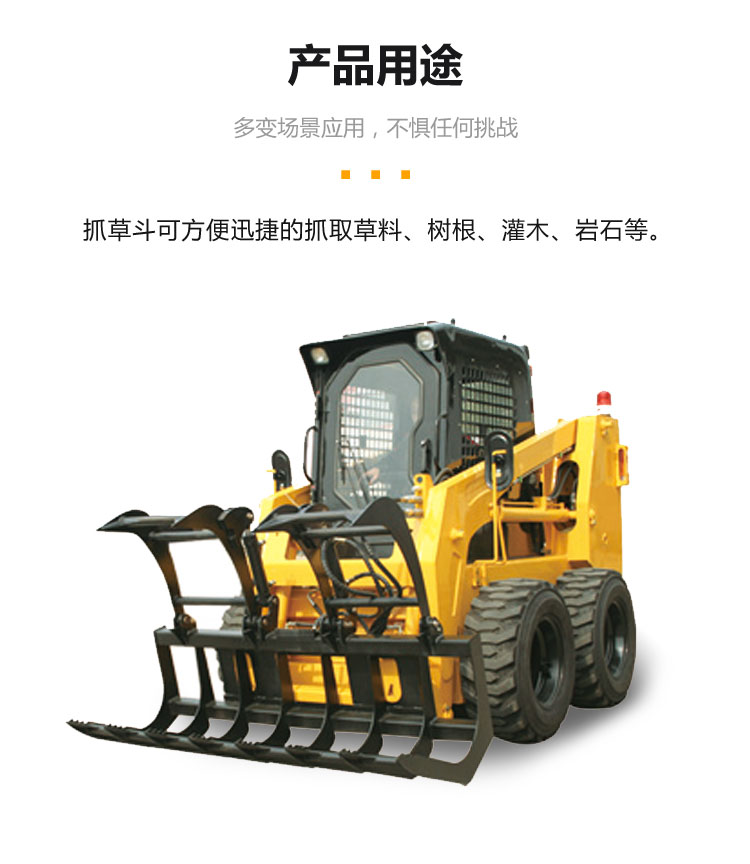 公司在提供全系列滑移机主机同时,自主研发生产相关配套附具。包括挖掘机、钻孔机、开沟机、清扫机、搅拌机、切割机、割草机、液压破碎锤、推土板、组合铲、抓木抓草叉、叉运铲等几十种作业附具。并可根据用户需求研发专项用途的作业机具。