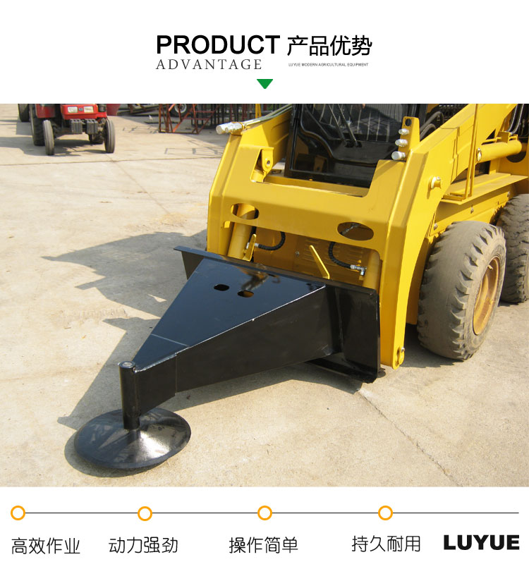 公司在提供全系列滑移机主机同时,自主研发生产相关配套附具。包括挖掘机、钻孔机、开沟机、清扫机、搅拌机、切割机、割草机、液压破碎锤、推土板、组合铲、抓木抓草叉、叉运铲等几十种作业附具。并可根据用户需求研发专项用途的作业机具。