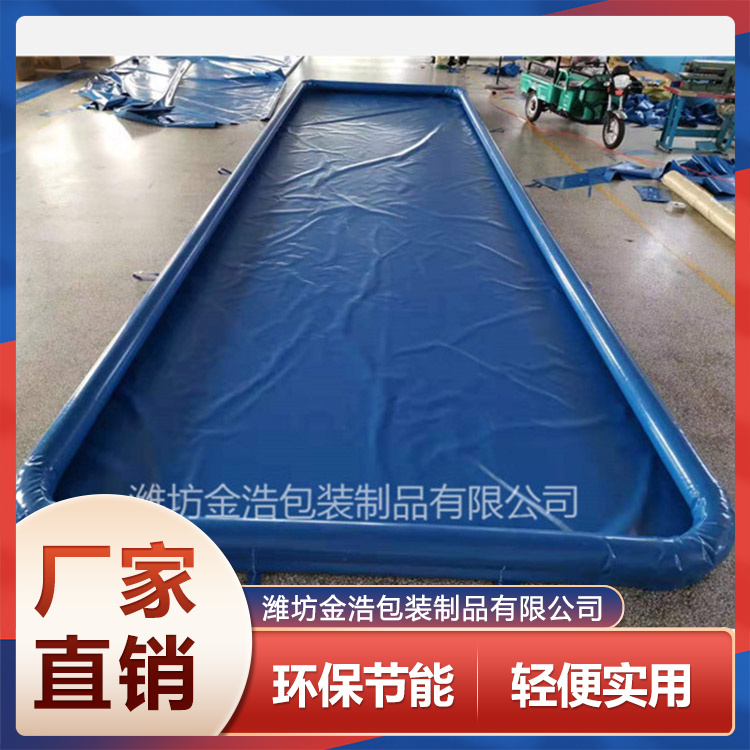 潍坊金浩包装制品有限公司,是一家集研发、设计、生产、销售为一体的专业化软体包装容器制造企业。 主要产品有集装箱液袋、水囊、水袋、变压器油囊、储液囊、支架储液池、软体储水罐、折叠鱼池、软体集雨水窖、桥梁预压水袋、软体沼气池、大型贮液软罐等各类软体储液容器产品。 产品具有环保节能、新颖高效、轻便实用、降低成本,可广泛应用于工业储存、油田储液、运输储液、抗旱救灾、市政消防、工程检测(预压)等行业各类液体的存储与运输。