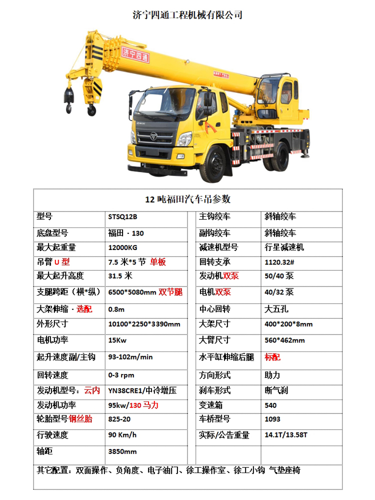 12吨福田汽车吊 液压吊车四通吊车山东吊车 价格面议