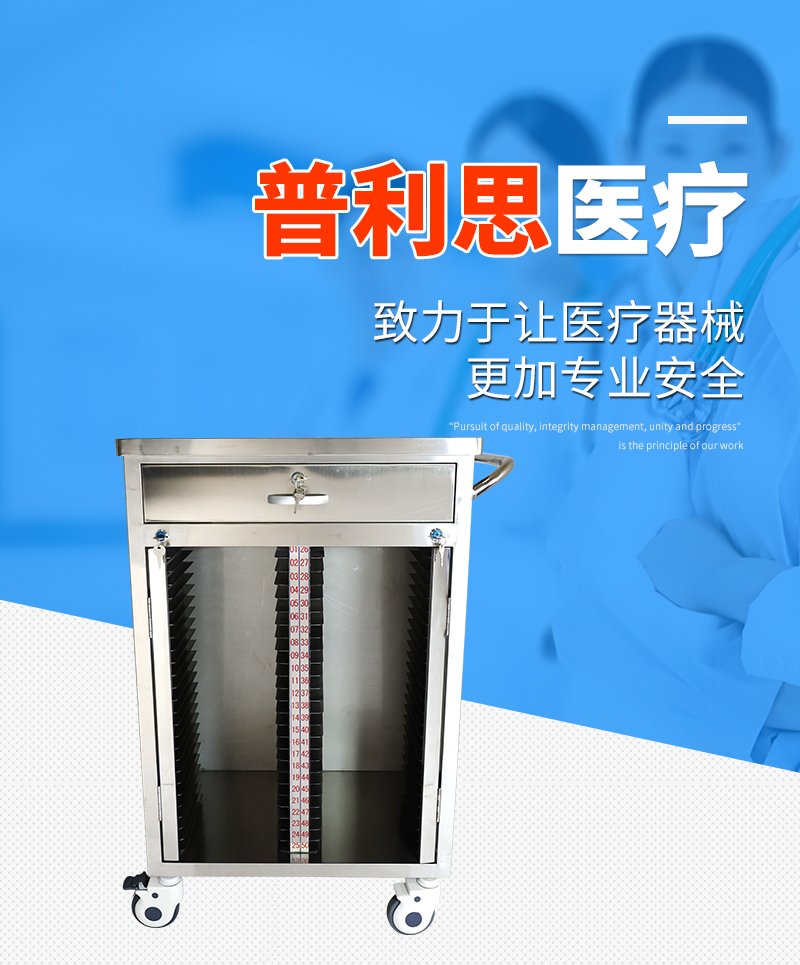 配置30格病历夹,抽屉滑道采用三节静音式滑轮,
