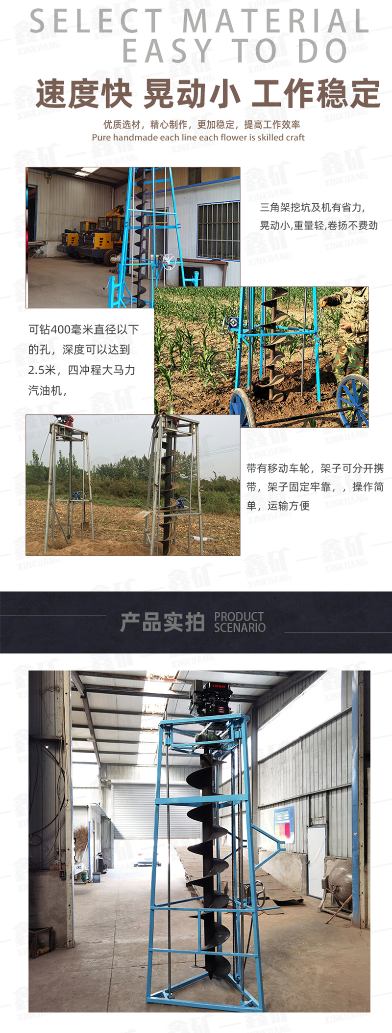 2. 操作简捷:挖坑机一名操作人员可完成各种土坑的挖钻工作;