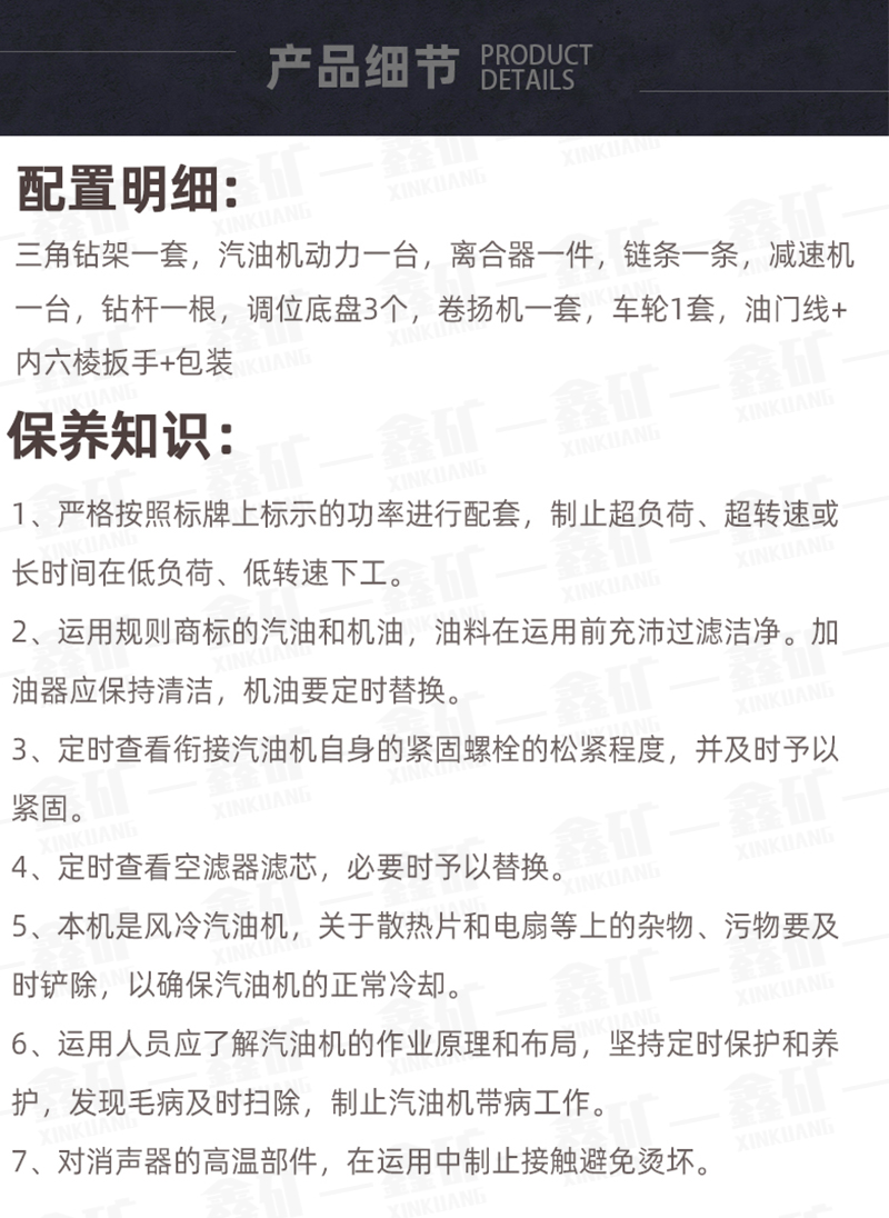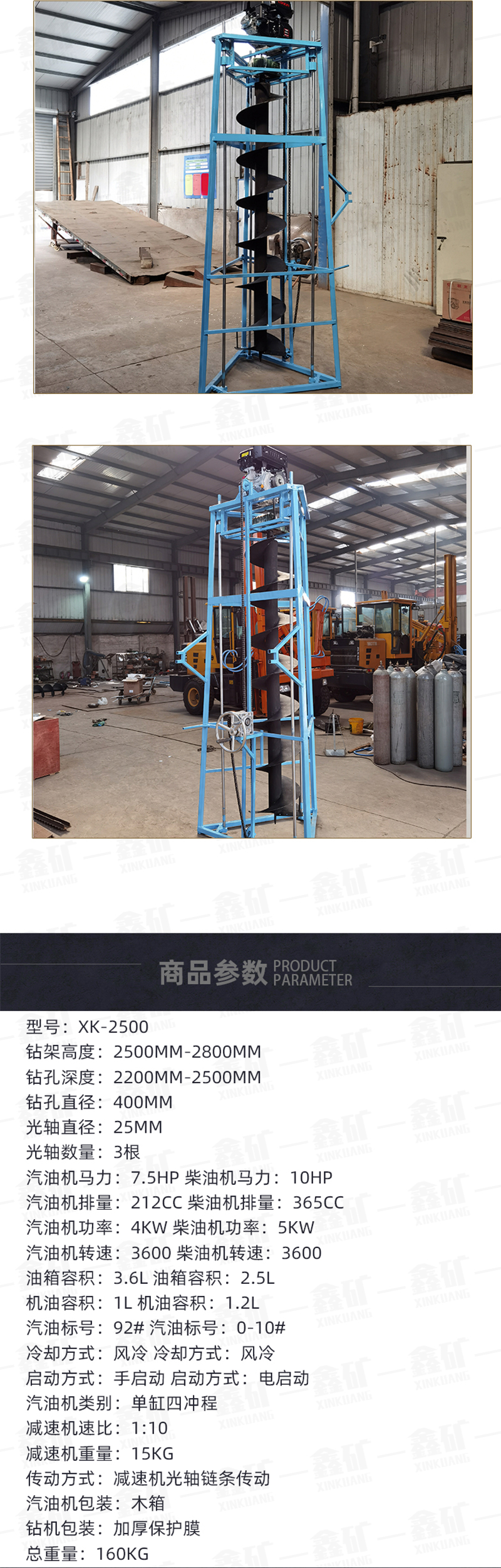 (2)可钻400毫米直径以下的孔,深度可以达到1.8米,(3)四冲程大马力汽油机,