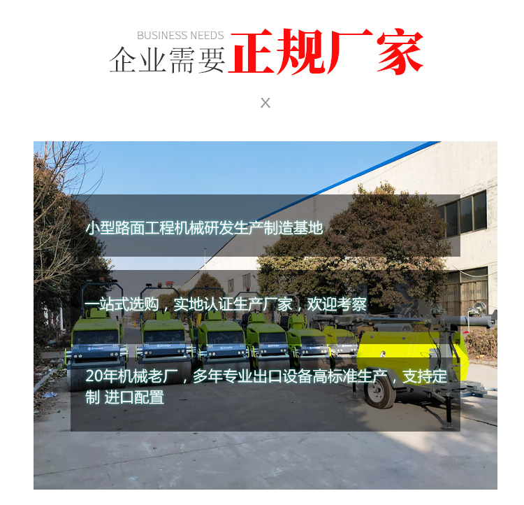 山东奔马工程机械有限公司位于山东省济宁市高新技术产业开发区,自八十年代以来有二十多年从事中小型压路机制造的生产历史,20年机械老厂,多年出口设备高标准生产,支持定制 ,小型路面工程机械研发生产制造基地,一站式选购,实地认证生产厂家,欢迎考察,2002年通过ISO9001质量体系认证。我公司生产销售小型压路机全系列,照明车塔灯 液压动力站设备压实机械设备、路面机械、建筑工程机械。本厂拥有先进的生产设备,经验丰富的技术人员,产品设计新颖、制造精良、坚固耐用,深受广大用户的欢迎。出口65个国家和地区,过硬的产品质量、良好的服务使我们与客户建立了长期稳定的合作关系。