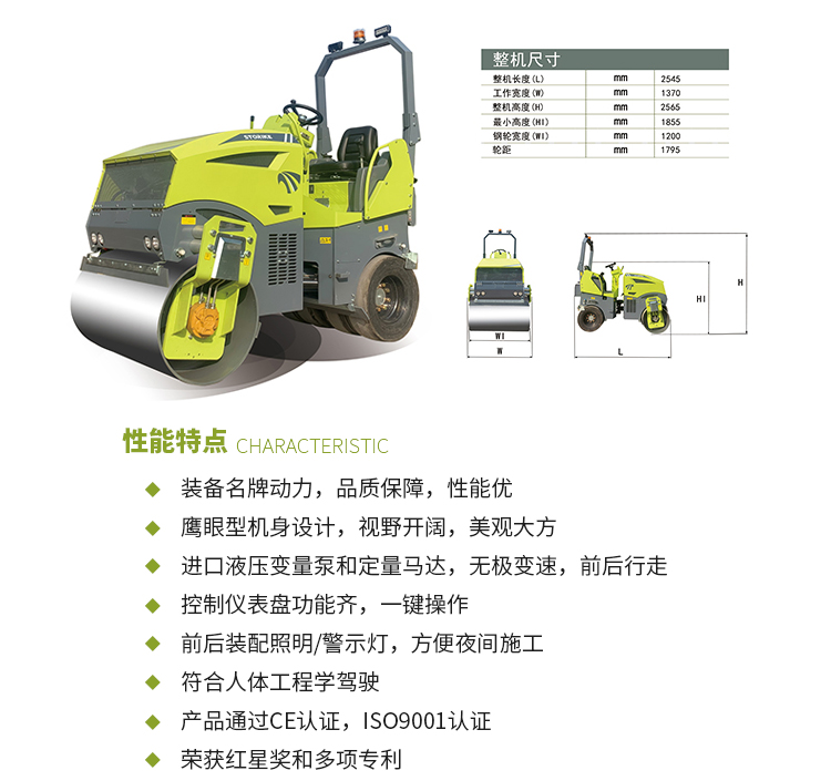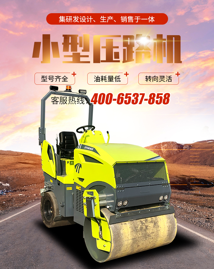 3吨压路机小型座驾式双钢轮震动 全液压系统前后双震