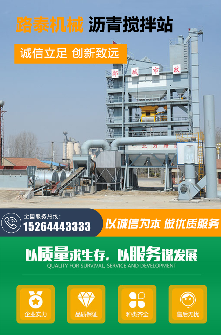 其关键部件燃烧器、传感器等均采用国际一线品牌元件,控制系统采用可编程器和控制计算机,可对生产过程中的称量、拌合、放料等进行自动、手动控制;搅拌机衬板、叶片采用高耐磨合金铸件,拌臂采用合金铸钢,使用寿命长;骨料采用累加计量方式,粉料及沥青均采用单独计量方式,以保证配料精度和可靠性;热骨料、矿粉采用斗式双链提升机,并有自动张紧装置。燃烧系统备有:轻油/重油/燃煤型燃烧器。除尘系统有重力除尘,旋风除尘,水除尘,袋式除尘;成品料仓有旁置式和下置式(30、60、80、100、120、240吨)等多种组合形式供用户选择。