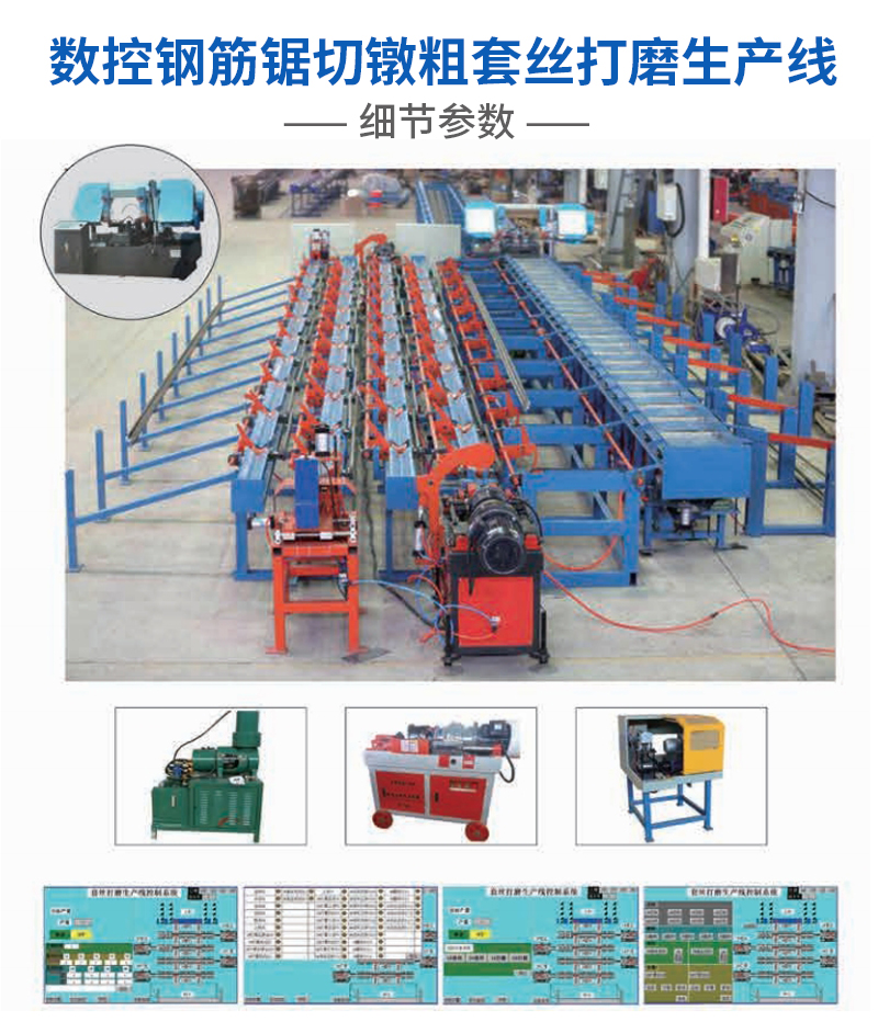 名称:数控钢筋锯切镦粗套丝打磨生产线