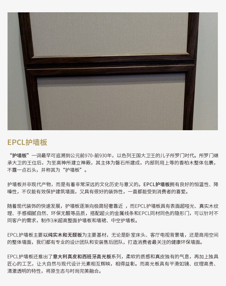 意大利EPCL实木门是圣蒂欧定制家居品牌旗下产品,采用欧洲进口实木板芯和EPCL木饰面,德国胶王PUR环保胶作为主要粘结剂,以风靡欧洲的德式T型门为基础,秉承严谨、细致、环保、服务的管控理念。