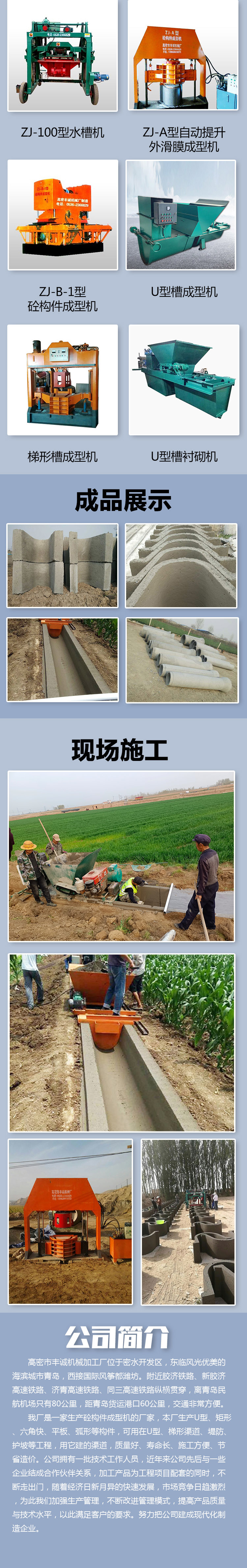 水渠一次成型机,机如其名。混凝土现浇水沟,渠面三向一次成型。在混凝土成型的过程中无需木模板支撑。机器依靠自身设计的成型原理,让混凝土按照图纸设计成型。这样的机械设备大大节省了人力资源,不用支付多余人工劳动力费用。施工效率也提升巨大,成型后的混凝土水渠强度达标。水渠一次成型机适用与开口大于0.3米小于7米直接的水渠边沟筑浇工程。水渠一次成型机只是这台设备其中的一个称谓,根据地方差异它也被叫做:水渠成型机、水渠滑模机、边沟滑模机、渠道衬砌机。