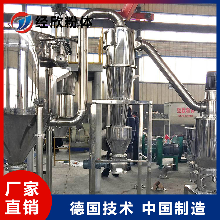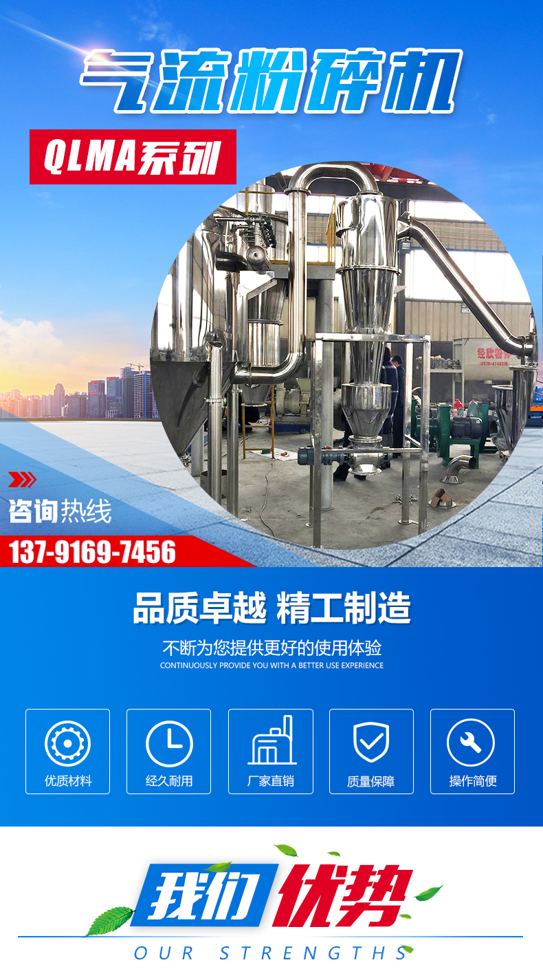 适合于莫氏硬度9以下的各种物料的干法粉碎,尤其适合于高硬度、高纯度和高附加值物料的粉碎。 颗粒加速技术的突破,极大的提高了粉碎效率,降低了能耗,过粉碎小粒形好,粒度分布窄且无大颗粒,产品粒度D97:2-75微米之间任意调节。 粉碎过程中,由于气流急剧膨胀而使气流温度降低,尤其适合于热敏性、低熔点、含糖份及挥发性物料的粉碎。 物料相互碰撞进行粉碎,有别于机械粉碎依靠刀片或锤头等对物料的冲击粉碎,因而设备无磨损,产品纯度高。