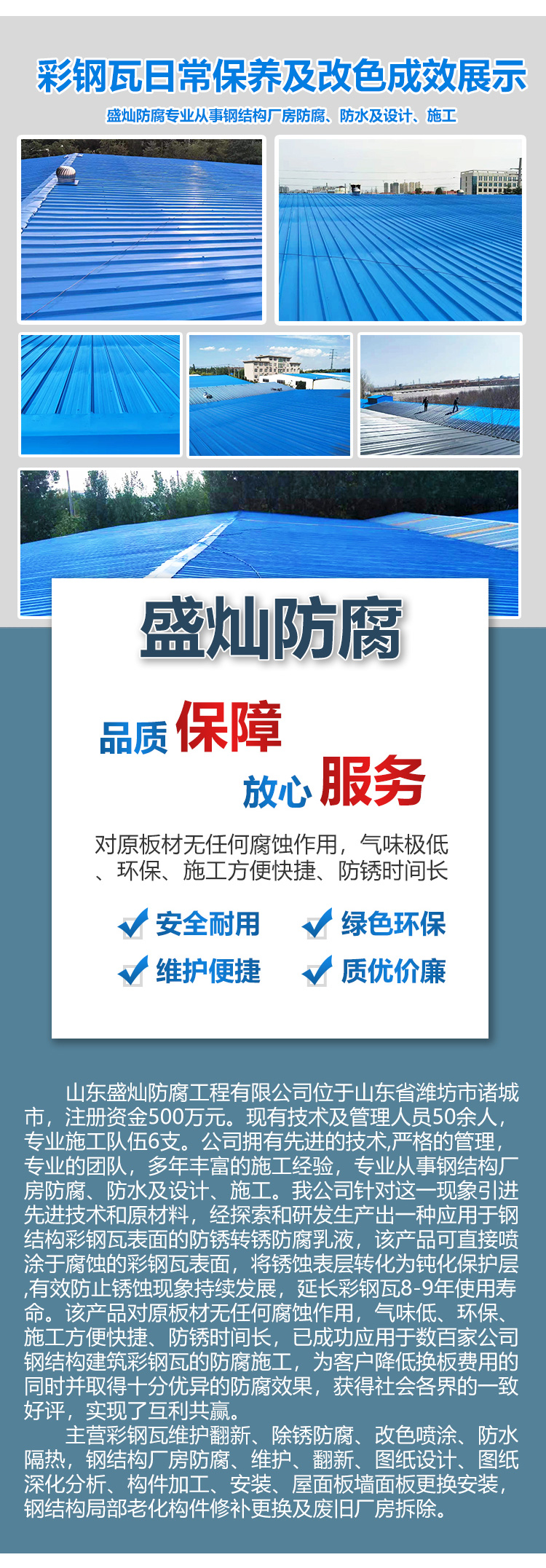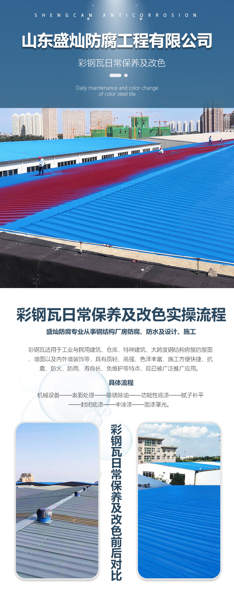 彩钢瓦日常保养 彩钢瓦改色 彩钢瓦翻新
