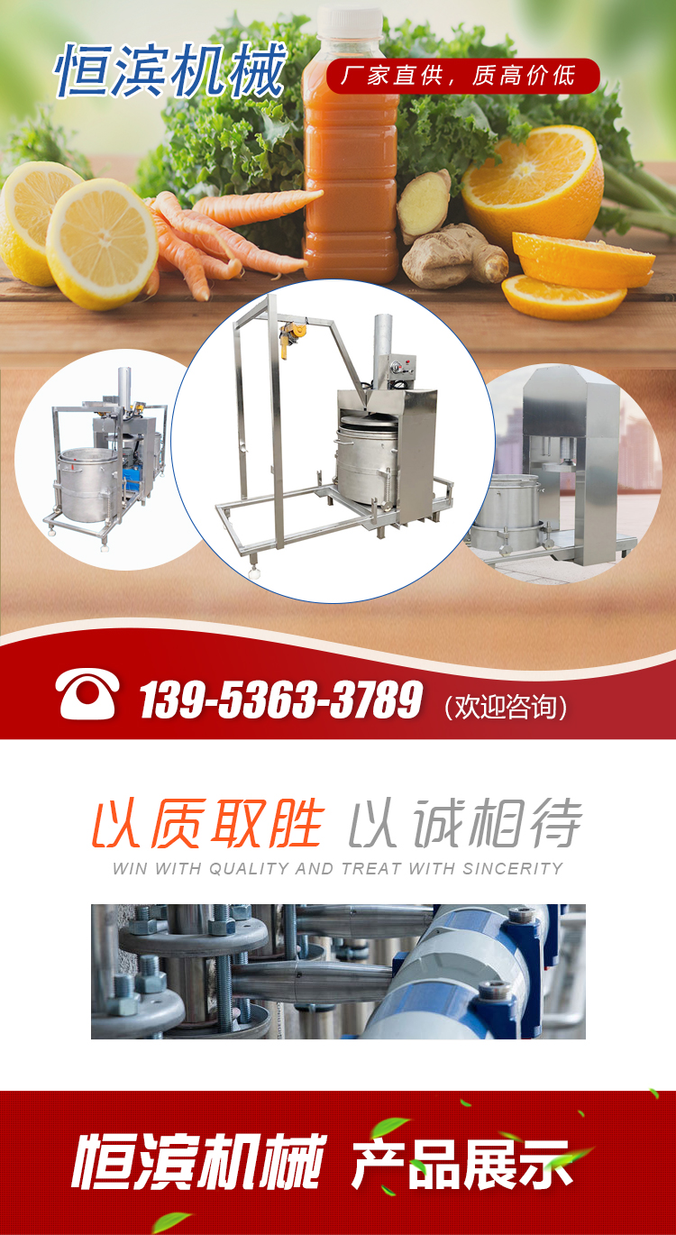 适用于各种中药材药渣、豆制品、腌渍菜、果蔬、酵素、酒糟等加工行业中进行压榨脱水、提汁、脱盐的主要设备,本机还可用于其它耐挤压物品的固液分离,不挑不拣,含水就能榨。