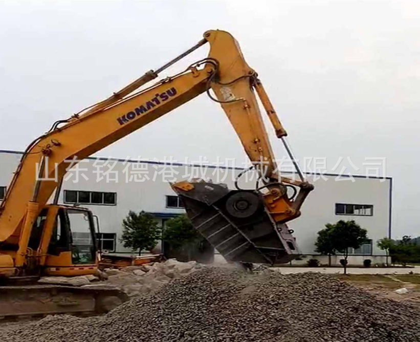 破碎斗采石厂青石碎石器出料12~13大小可调节20-36吨挖机可以适配UJ200的破碎斗,进料为50公分以下的石头,出料1.5公分至12公分可以自由调节,调节方式为斗体后面的垫板数量来调节。垫板越多,出料越小,垫板越少,出料越大。环保型破碎斗,可替代大型破碎机,随走随破,节省运输费用和原料费用,利润大大提高。目前有200和300两个机型,200型适合挖机吨位20-36吨,300型挖机适配380-450吨挖机。破碎铲斗是依靠挖掘机的液压动力,带动液压马达传动,偏心轴转动,从而带动鄂式夹板挤压石子破碎。粉碎石子迅速,进料50公分以下,出料从1.5公分到12公分可自由随客户需要而调节。