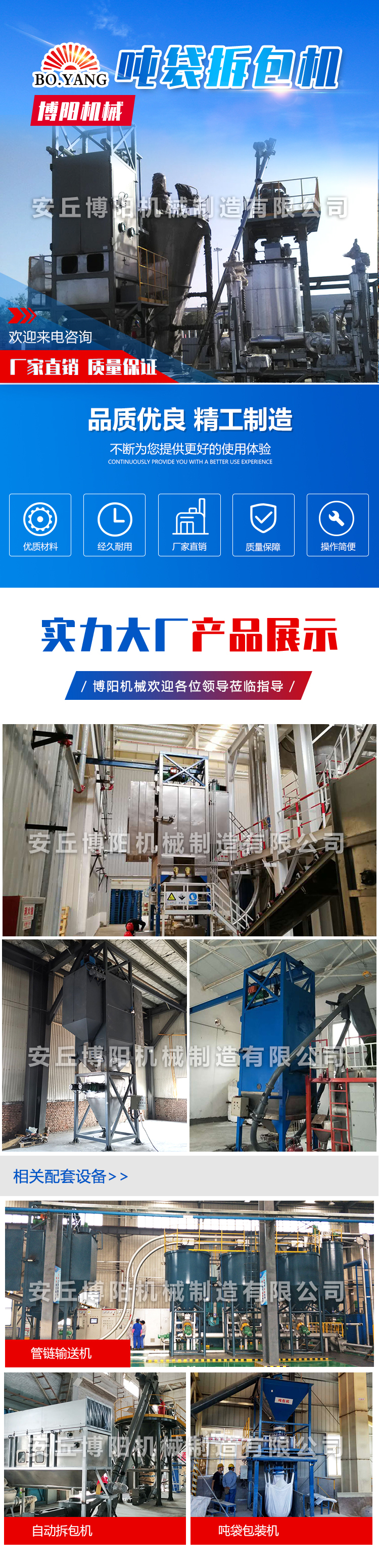 博阳机械自动拆包机 配套管链输送机上料 无尘拆袋卸料站非标定制