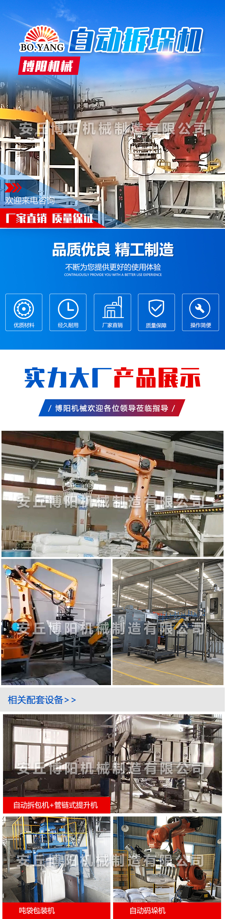 博阳机械自动拆包机 配套管链输送机上料 无尘拆袋卸料站非标定制