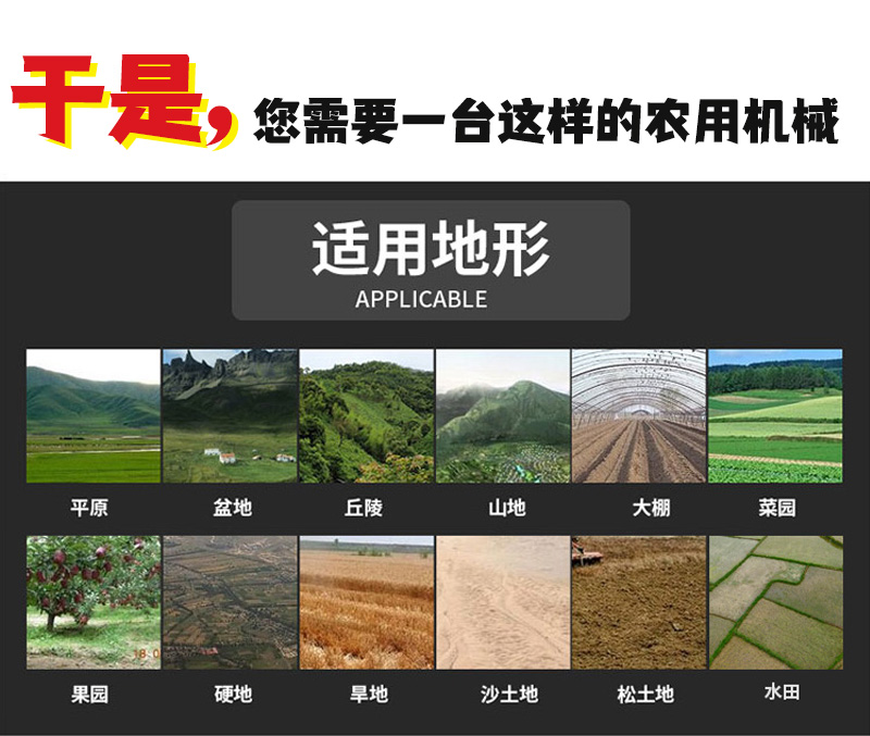 适用范围:开沟、施肥、旋耕、打药、回填等
