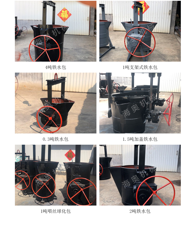 4、铁水包的包体钢板较厚,包底采用锥度、底箍、焊接相结合的三重保险结构,延长了使用寿命,同时也保证了操作者的安全。
