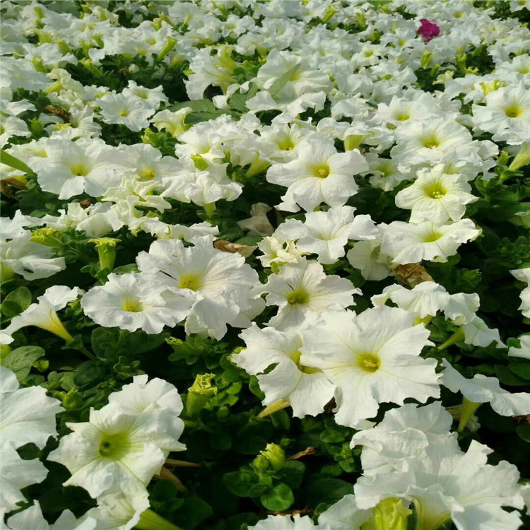 夏季能耐35℃以上的高温。夏季生长旺期,需充足水分,特别在夏季高温季节,应在早、晚浇水,保持盆土湿润。但梅雨季节,雨水多,对矮牵牛生长不利,盆土过湿,茎叶容易徒长,花期雨水多,花朵易褪色或腐烂。盆土若长期积水,则烂根死亡,所以盆栽矮牵牛宜用疏松肥沃和排水良好的砂壤土。属长日照植物,生长期要求阳光充足,在正常的光照条件下,从播种至开花约需100天左右。冬季大棚内栽培矮牵牛时,在低温短日照条件下,茎叶生长很茂盛,