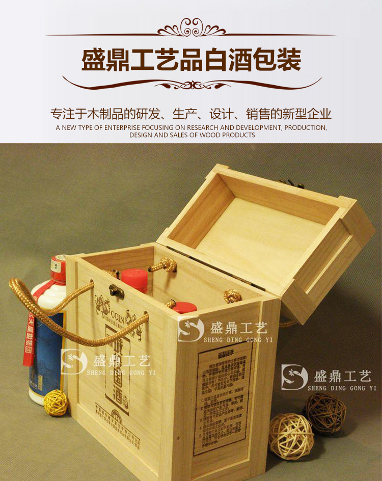 六瓶装白酒木箱 实木酒箱 高档白酒礼盒 厂家定做 曹县盛鼎包装厂