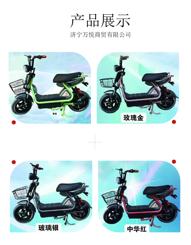 济宁万悦商贸有限公司2015年6月成立于济宁任城区,是一家经营电动自行车的生产,加工及组装、销售电动车配件、汽车用品销售及网上销售。