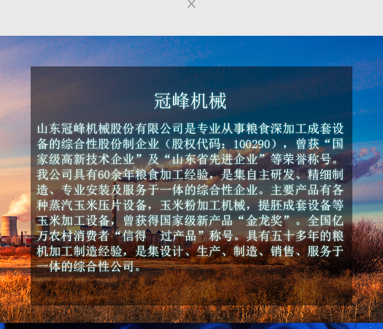 我公司具有60余年粮食加工经验,是集自主研发、精细制造、专业安装及服务于一体的综合性企业