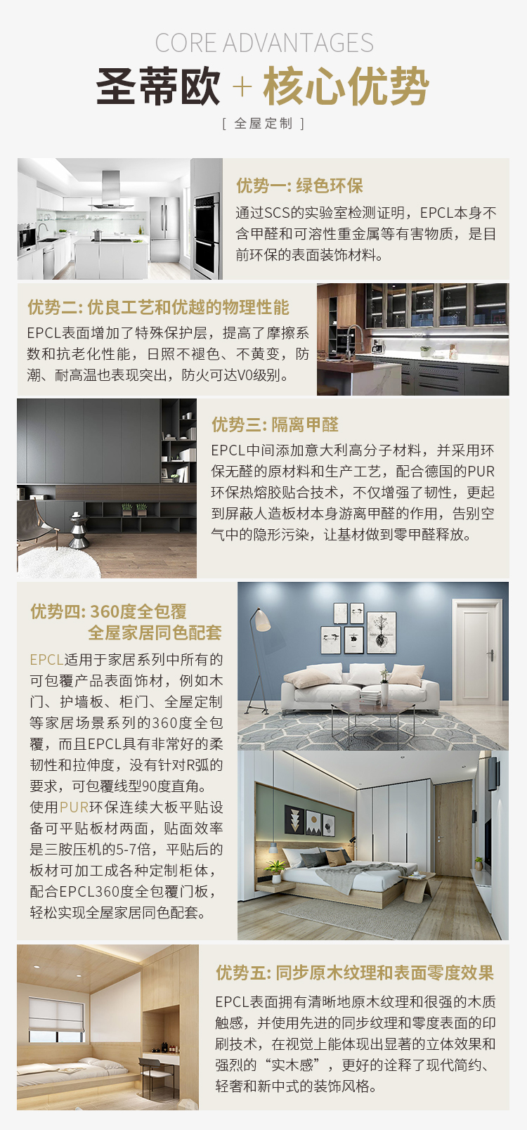 意大利EPCL实木门是圣蒂欧定制家居品牌旗下产品,采用欧洲进口实木板芯和EPCL木饰面,德国胶王PUR环保胶作为主要粘结剂,以风靡欧洲的德式T型门为基础,秉承严谨、细致、环保、服务的管控理念。
