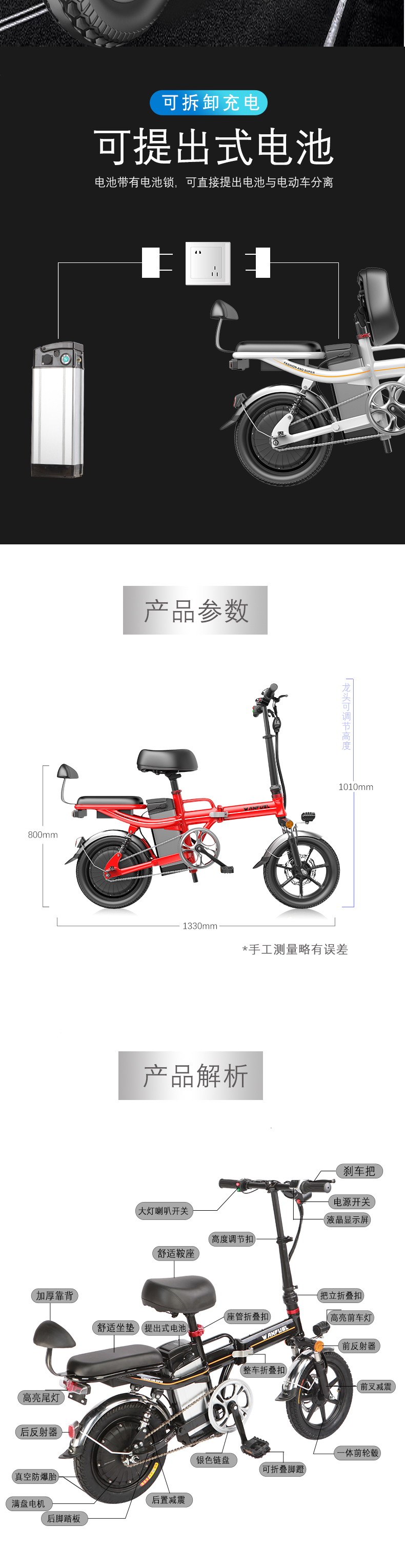 电动车折叠电动自行车锂电池小型助力车电瓶车代驾车
