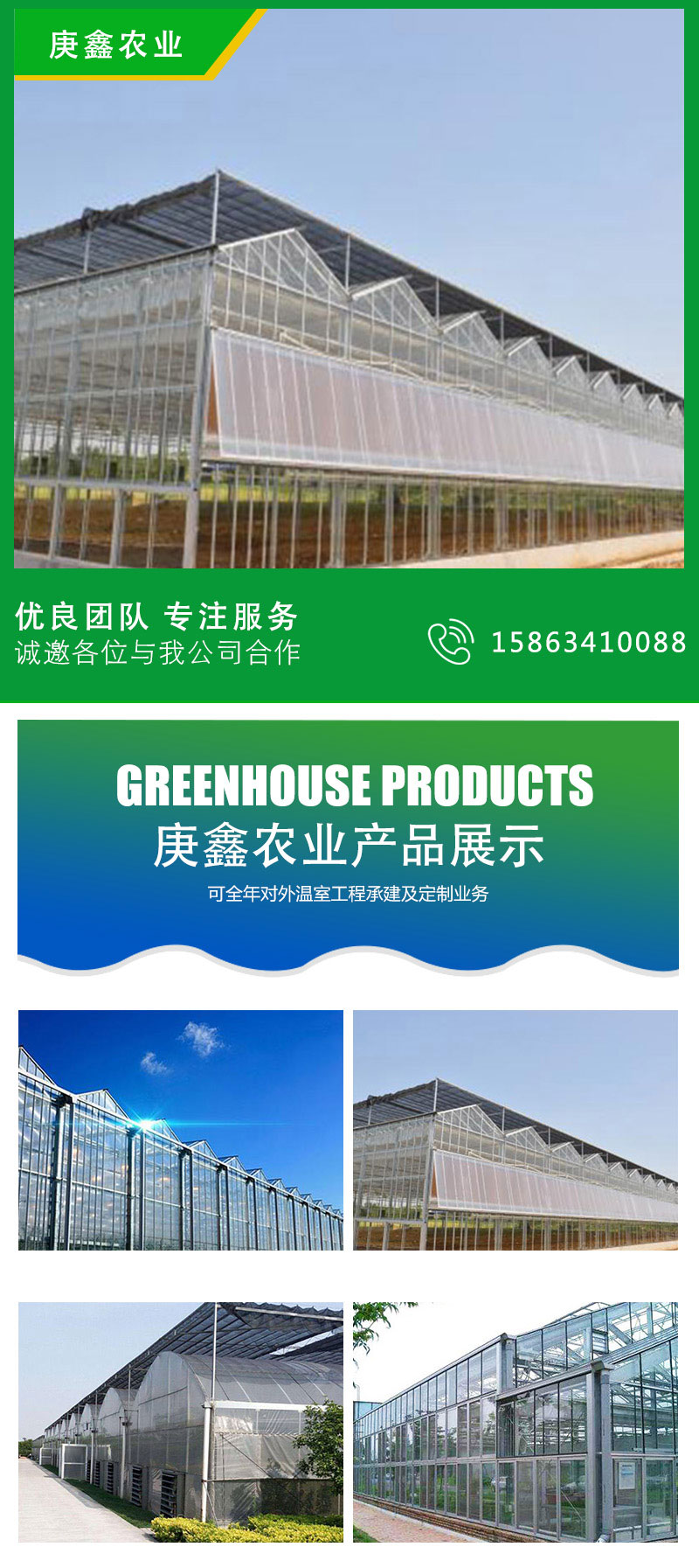 特点:美观坚固,框架结构简单实用,制造成本相对较低,属于经济型温室,夏季通风效果好,适合大规模蔬菜花卉种植,特别适用于南方地区使用。