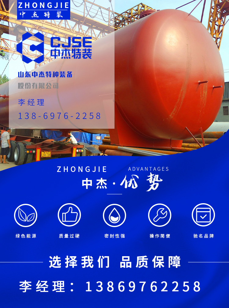 液化石油气储罐用于存储液化石油气(丙烷)为主要成分介质的压力容器,其储存介质50℃时饱和蒸气压小于或者等于1.63MPa,H2S溶解度小于7.7mg/L。分为地上储罐和地埋储罐两种形式。