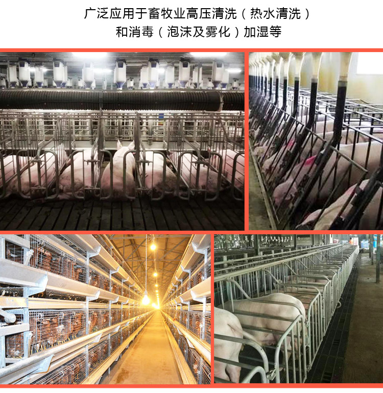 前置热水,安全节能,主要用于畜牧业高压清洗(热水清洗)和消毒(泡沫及雾化)加湿等。施密特集中式高压清洗系统设备具有集中化、智能化、高效节能、安全稳定的特点。