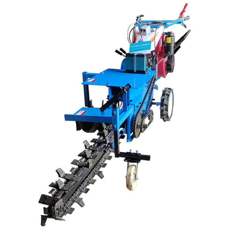 链条式开沟机主要用于自来水管道挖沟、通讯光缆挖沟、电缆挖沟等。每小时可以挖沟400米左右。该机采用回旋式开沟器,分为大中小型,小型:开沟宽度为10--30厘米,深度为50—150厘米,工作效率150—450米∕时;中型:开沟宽度为20—60厘米,深度为60—180厘米,工作效率150—500米∕时;大型:开沟宽度30—150厘米,深度50—230厘米,工作效率150—700米∕时,可挖冻土1.5米深。适用农田水利灌溉渠道,煤气管道、石油管道、自来水管道,地下电缆铺设等各项工作的开沟作业。并配套墙边、路边专用挖沟设备。回旋式高速回填机是专为回旋式挖沟机设计的新配套产品,工作效率极高,每小时可回填500—700米,回填质量高、速度快。
