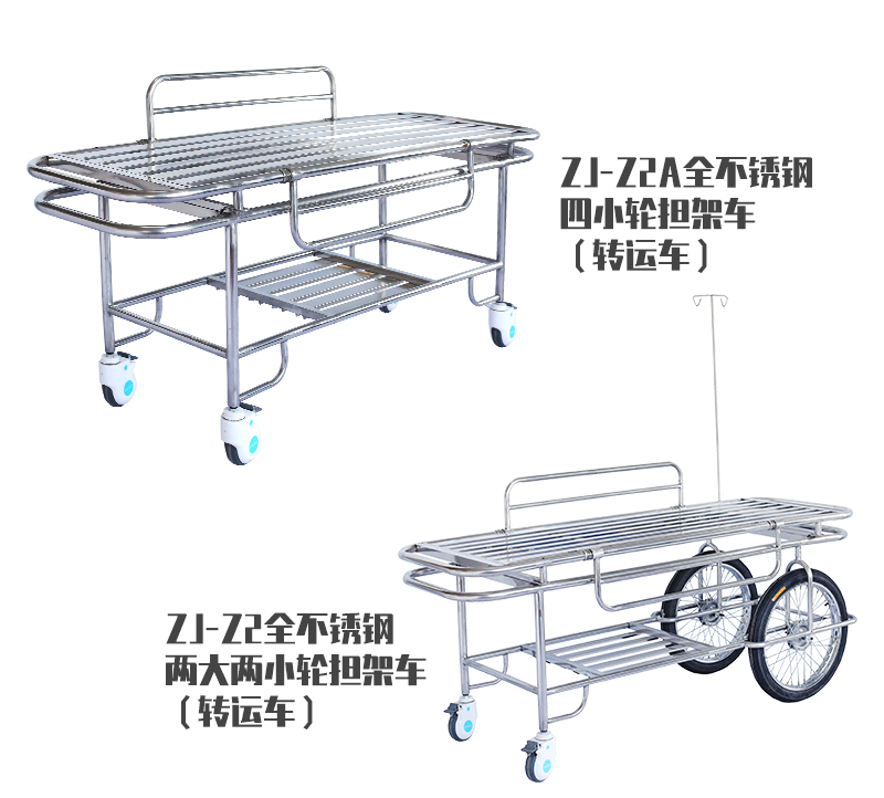 3、担架面:框架由直径32mm的圆管(厚度为1.2mm)和手握区(直径25mm圆管)组成,台面由优质不锈钢拉丝面板冲折、焊接而成。对角输液架孔,标配一个不锈钢输液架。设有护栏,使用时抬起,不使用时可落下,保证病人安全,护栏升落快速方便,护栏升起后自动锁止,操作简便,安全可靠。