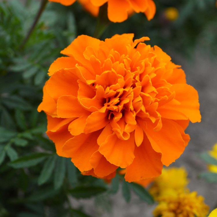 万寿菊为菊科万寿菊属一年生草本植物,茎直立,粗壮,具纵细条棱,分枝向上平展。