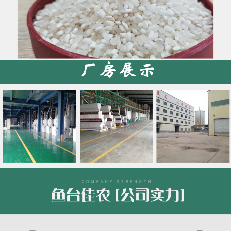 鱼台佳农农产品有限公司坐落于山东省鱼台县,主要生产鱼台本地晚梗米,中国国家地理标志产品,其特政的生产环境及土质,源自微山湖灌液水天然无污染,并且长达160天的超长无霜生长期,获得丰沛的日照时间,颗粒饱满,自然成热,实为鱼台一大特产,深初广大客户的喜爱。