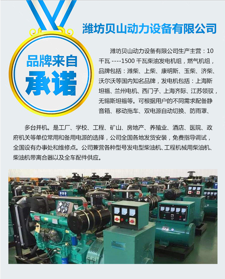 感谢您选择使用潍坊贝山动力设备有限公司生产的柴油发电机组。在您选择使用“贝山”柴油发电机组的同时,您也就得到了由我们提供的完善的售后服务,以及纯正的零配件供应。