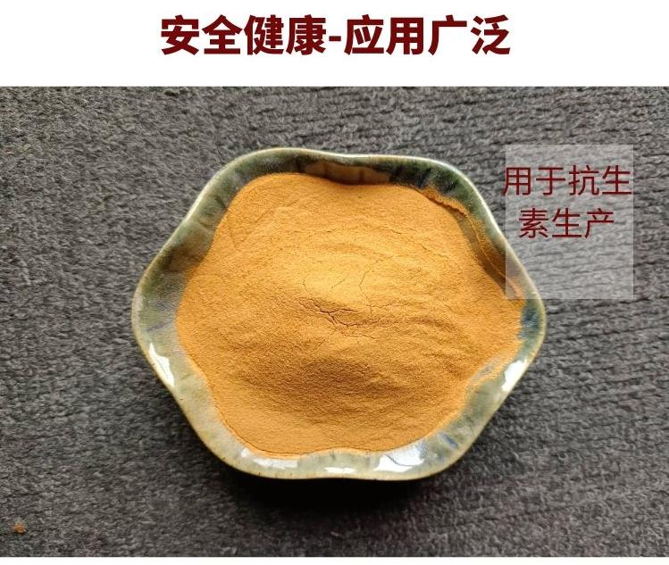 玉米浆粉的主要成分是氨基酸和多肽类,还有丰富的维生素和生长因子,蛋白含量高达42%以上,氨基酸总量35%以上,灰分低于20%,水分低于10%,玉米浆干粉相对于玉米浆更加易保存、易储运,大大降低了生产使用成本。 玉米浆干粉是微生物生长很普遍应用的有机氮源,它还能促进青霉素等抗生素的生物合成。其水溶性蛋白质保存完好,保持了玉米浆的所有特性,加热方式为蒸汽加热,产品无杂质、无焦化现象。
