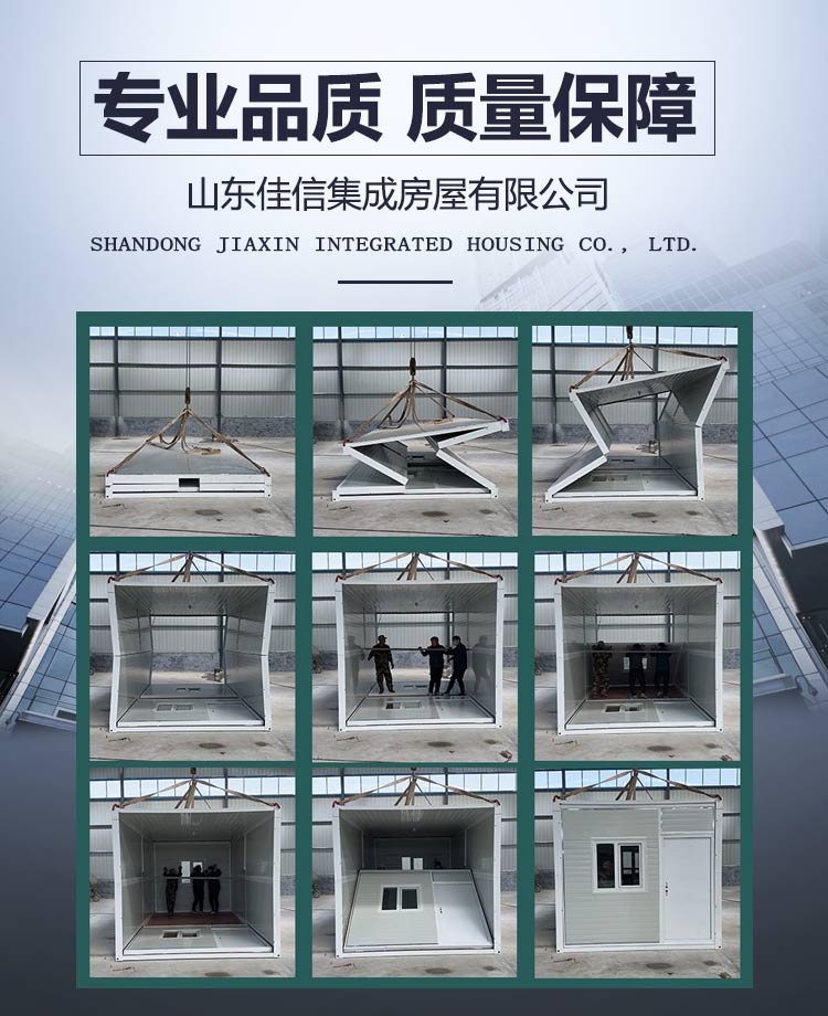 山东济宁佳信集成房屋有限公司占地面积13000平方,是专业从事折叠住人集装箱、折叠集装箱房屋、移动折叠式集装箱、易折叠集装箱房、可折叠集装箱、集装箱折叠、折叠集装箱、移动住人集装箱 、工地住人集装箱研发、生产、制造、销售、租赁等为一体的创新企业。产品销往世界等地,欢迎世界各地的客户来进行实地考察、洽谈合作。