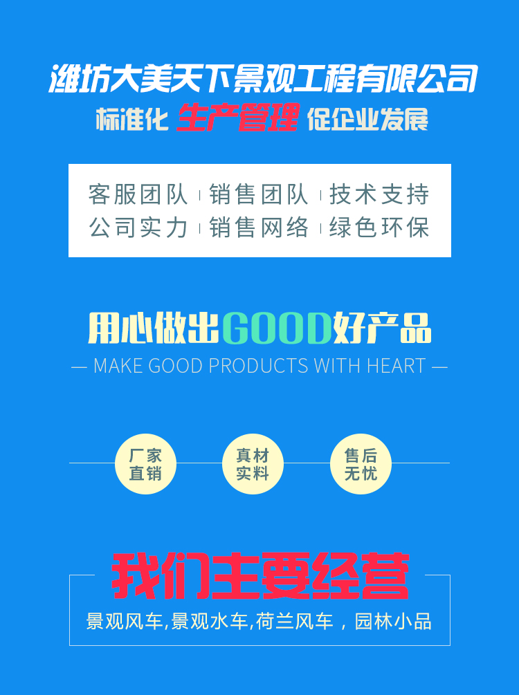 注意:以上价格不是真实价格,需要根据尺寸、用材、图案、数量来定。我公司可承接设计定制各种高度规格荷兰景观风车,款式众多,支持来图定制。
