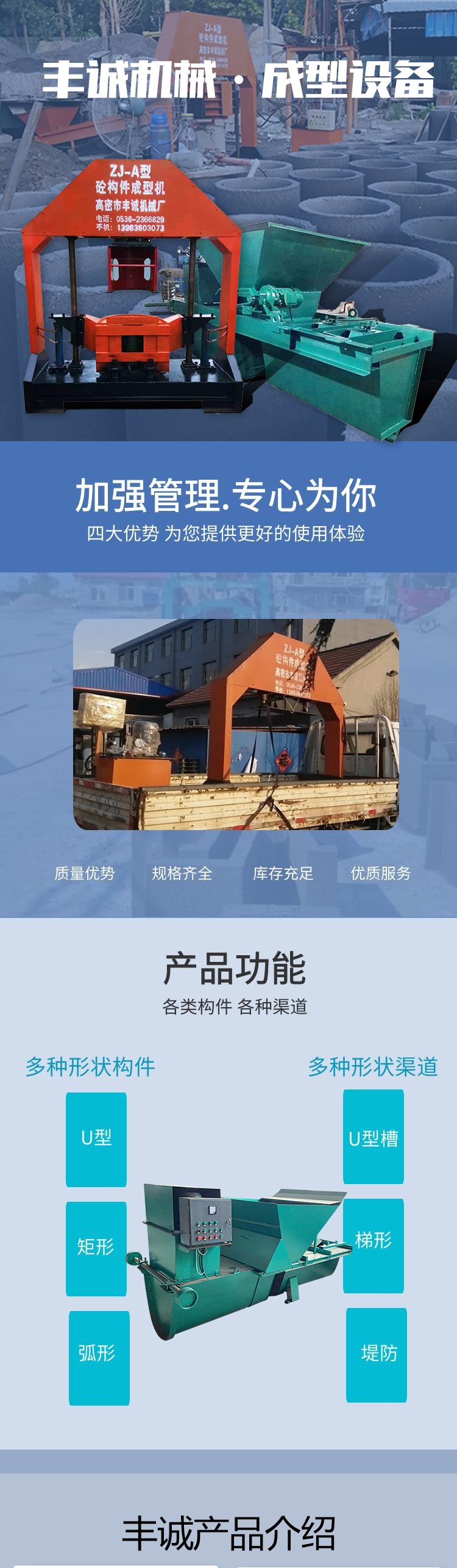 水渠一次成型机,机如其名。混凝土现浇水沟,渠面三向一次成型。在混凝土成型的过程中无需木模板支撑。机器依靠自身设计的成型原理,让混凝土按照图纸设计成型。这样的机械设备大大节省了人力资源,不用支付多余人工劳动力费用。施工效率也提升巨大,成型后的混凝土水渠强度达标。水渠一次成型机适用与开口大于0.3米小于7米直接的水渠边沟筑浇工程。水渠一次成型机只是这台设备其中的一个称谓,根据地方差异它也被叫做:水渠成型机、水渠滑模机、边沟滑模机、渠道衬砌机。