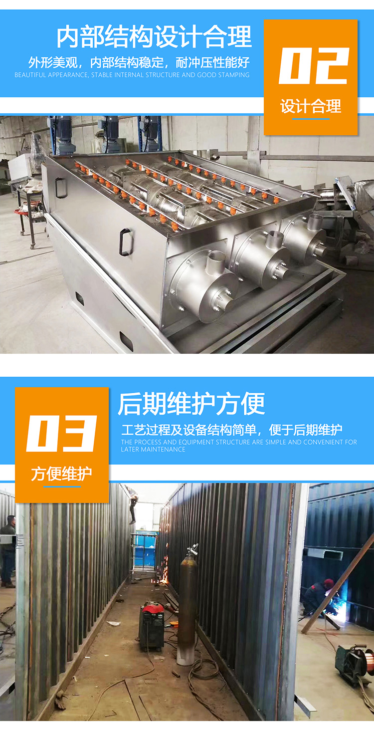 溶气罐产生溶气水,溶气水通过释放 管进入待处理的水中,小气泡缓慢上升并粘附于杂质颗粒上,形成比重小于水的浮体,上浮水面,形成浮渣,然后由 刮渣机将浮渣去除,比水比重大下沉到沉淀椎体内,间歇性排放到污泥池。 设备主体由溶气泵、气水分离器、絮凝室 、气浮接触室、分离室、沉淀椎体、集水槽等几部分组成。