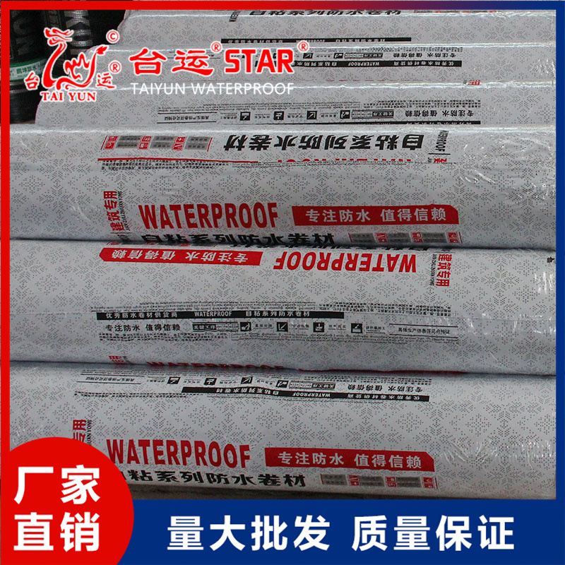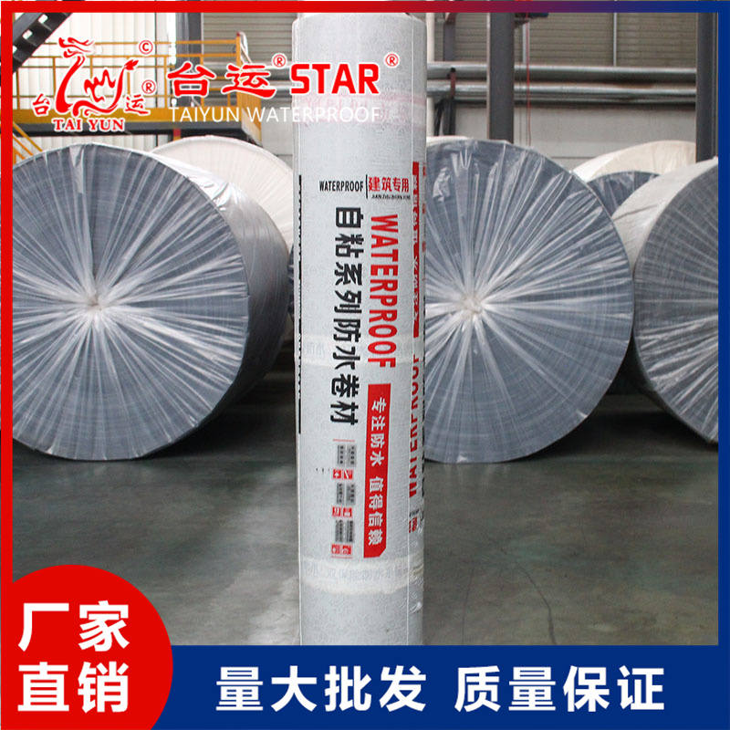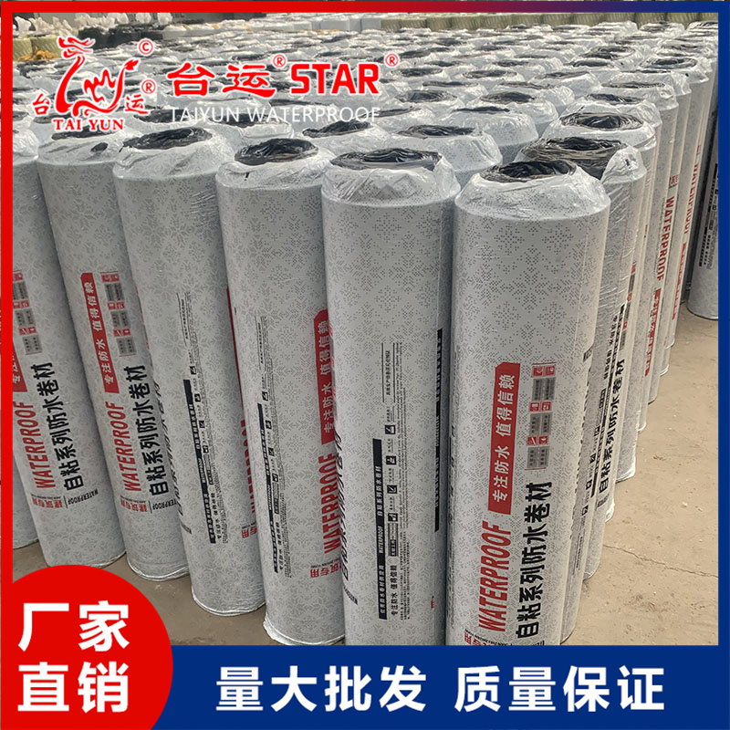 自粘防水卷材是一种以SBS等合成橡胶、增粘剂及优质道路石油沥青等配制成的自粘橡胶沥青为基料,强韧的高密度聚乙烯膜或铝箔作为上表面材料,可剥离的涂硅隔离膜或涂硅隔离纸为下表面防粘隔离材料制成的防水材料。它是一种极具发展前景的新型防水材料,具有低温柔性、自愈性、及粘结性能好的特点,可常温施工、施工速度快、符合环保要求。