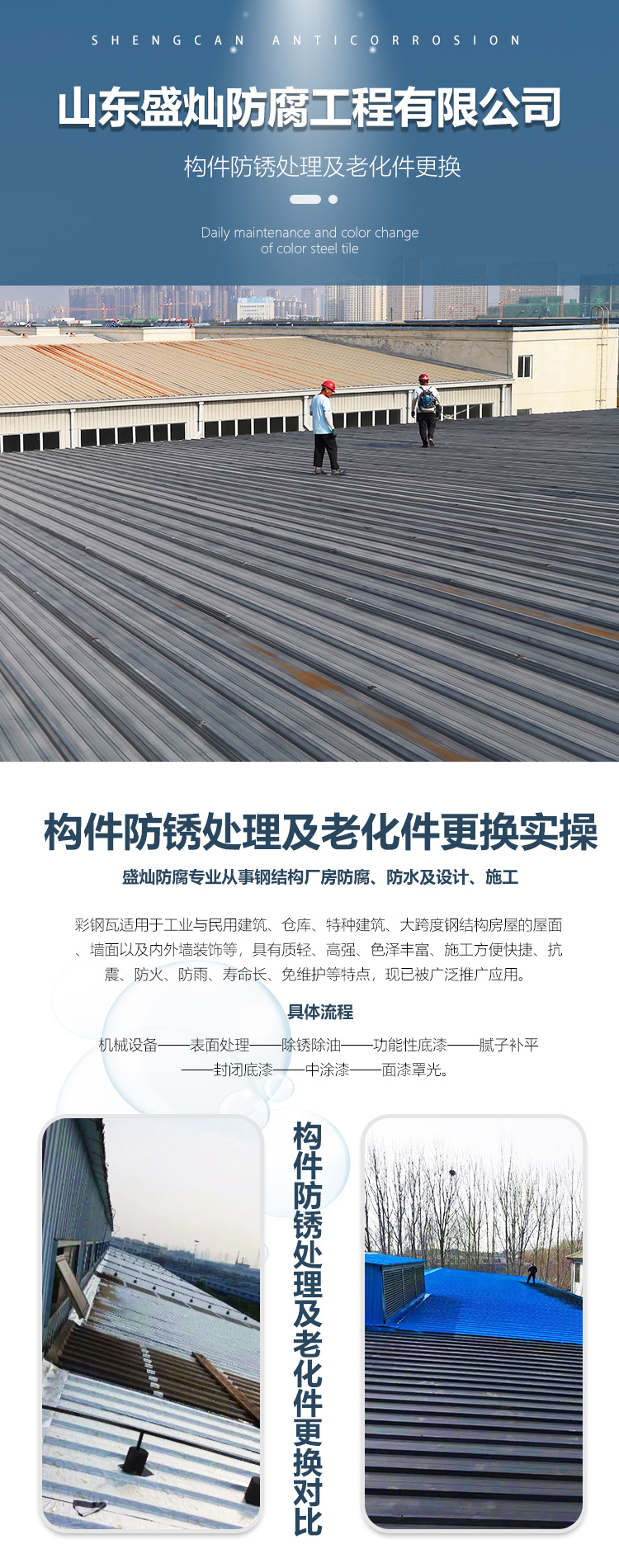 屋面局部构件防锈处理 屋面老化构件更换 彩钢瓦翻新
