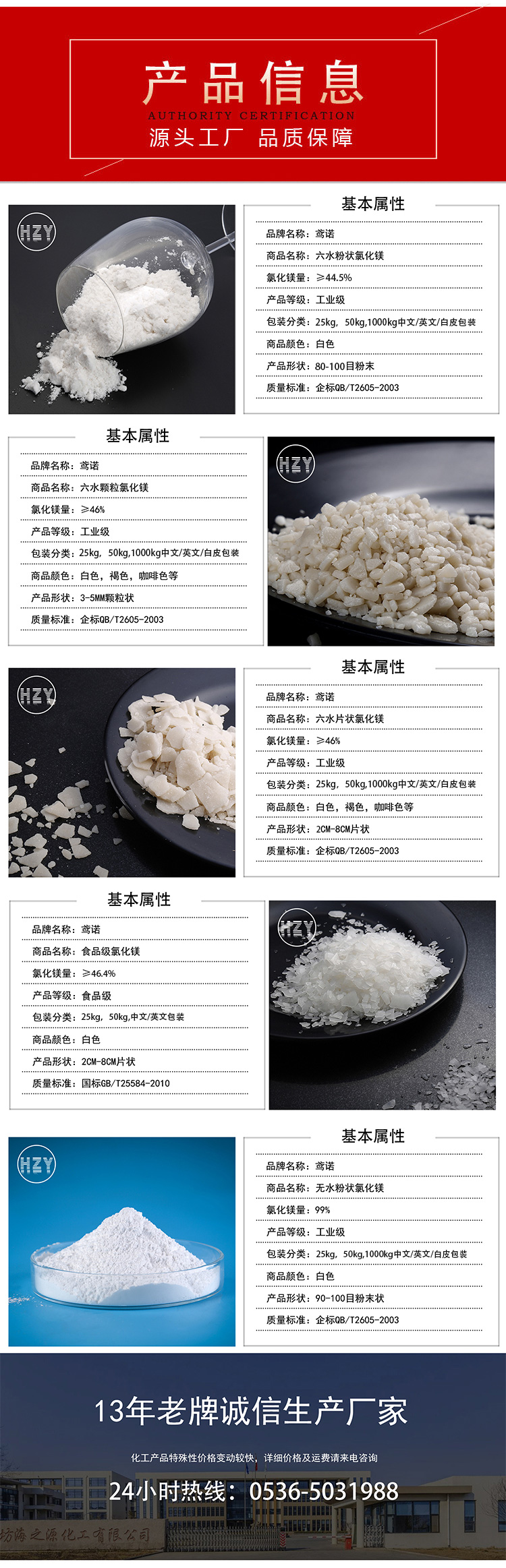六水粉状氯化镁 氯化镁产品 工业级氯化镁