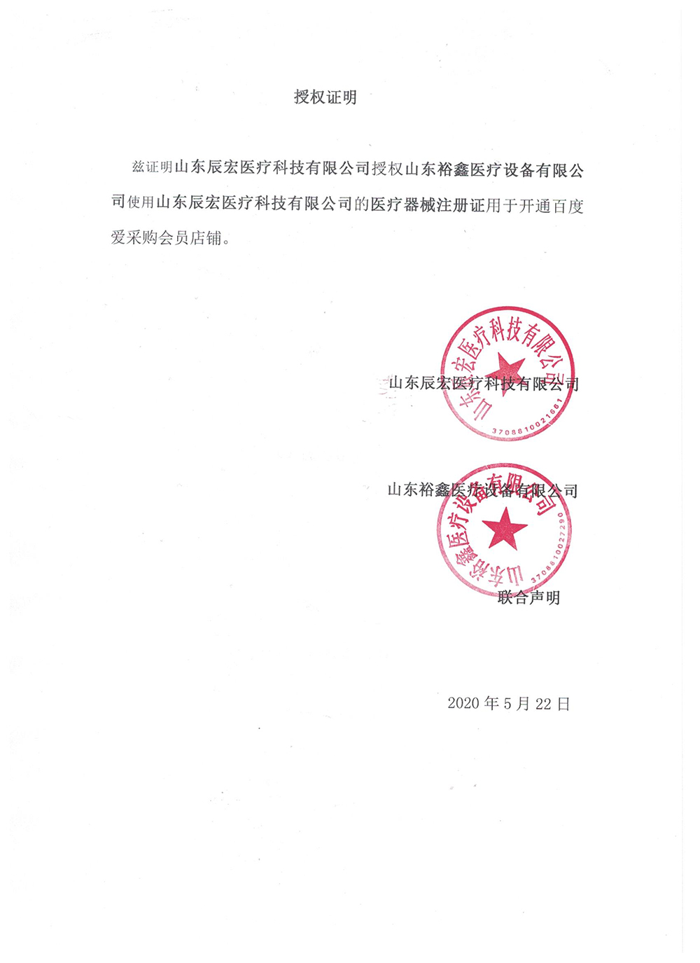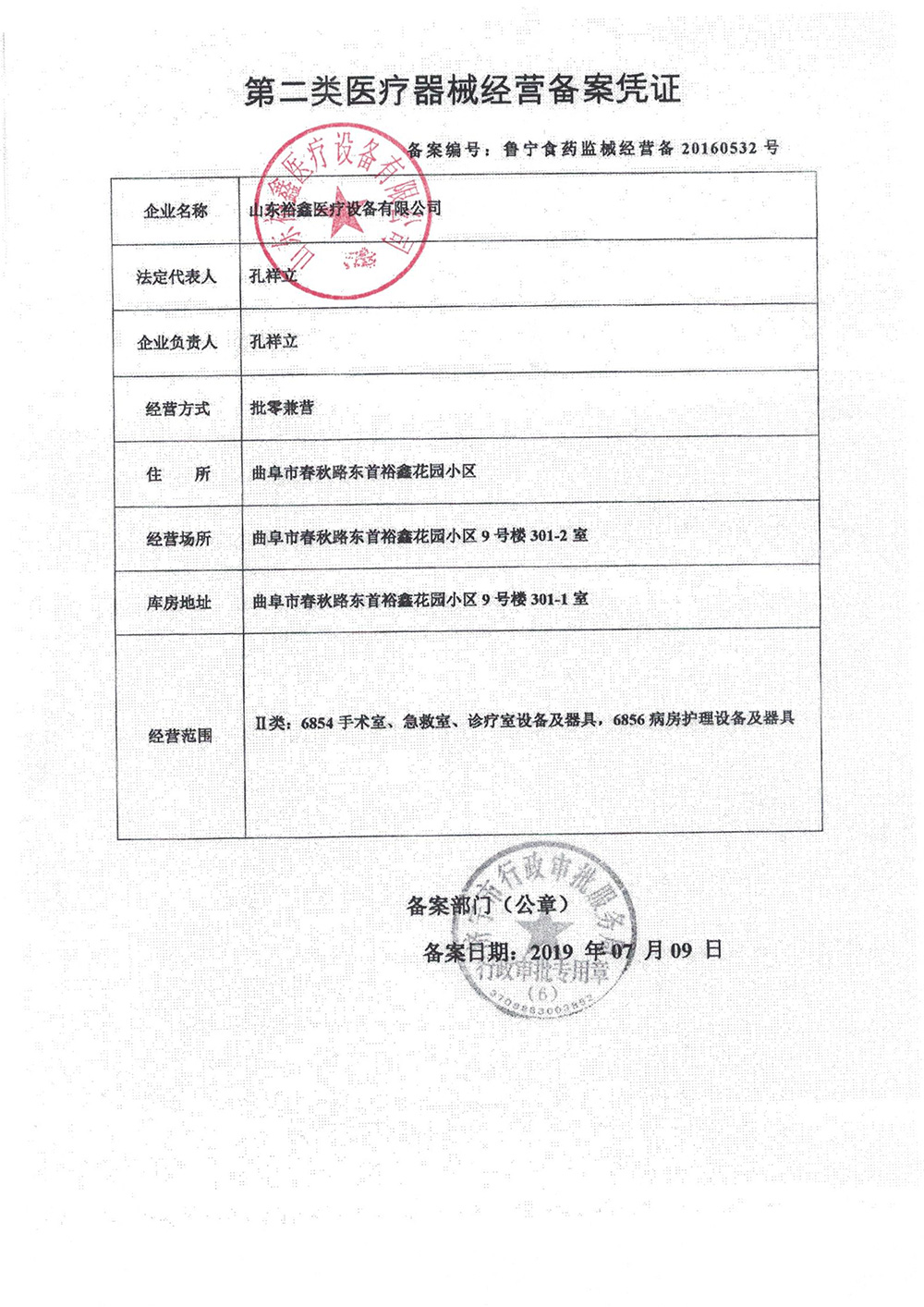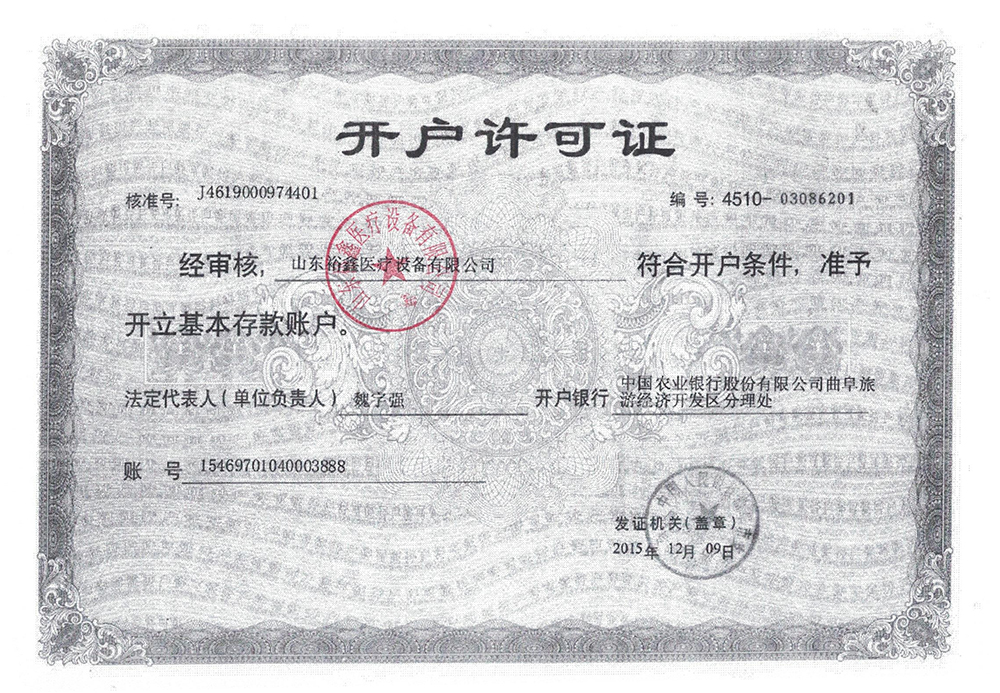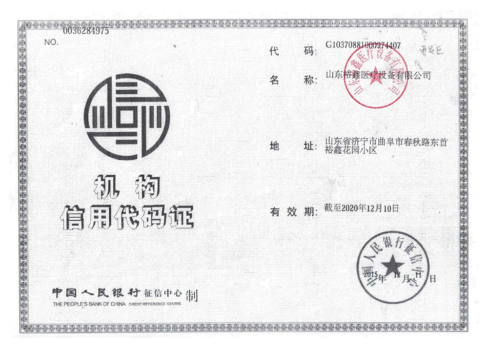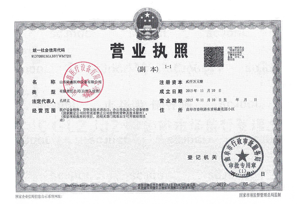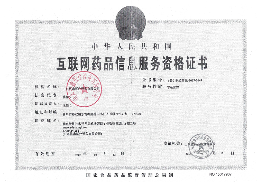 山东裕鑫医疗设备有限公司相关资质