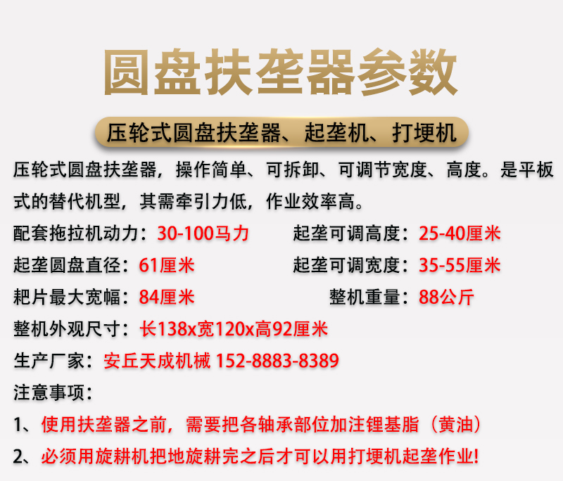圆盘起垄机 厂家直销圆盘施肥起垄一体机带压轮四轮拖拉机带多用途圆盘起垄机