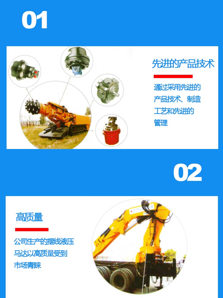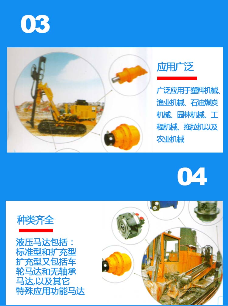 济宁英达液压有限公司是专业生产摆线液压马达的现代高新企业,坐落于山东省济宁市经济开发区,通过采用先进的产品技术、制造工艺和先进的管理,公司生产的摆线液压马达以高质量受到市场青睐。广泛应用于塑料机械、渔业机械、石油煤炭机械、园林机械、工程机械、拖拉机以及农业机械