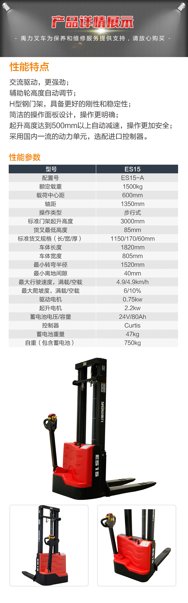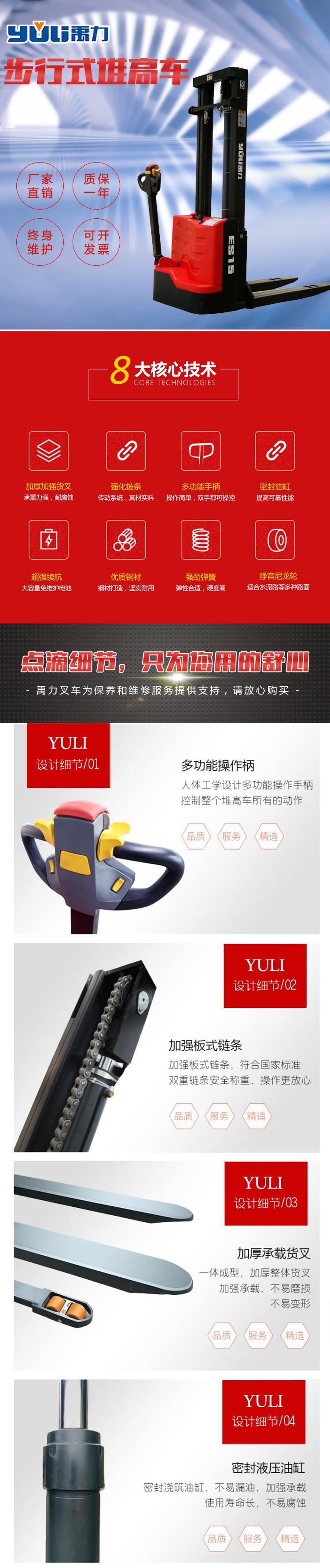 厂家载重2吨仓储前移式电动堆高叉车电动堆垛升高车山东叉车